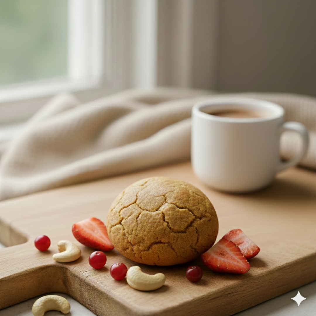 Enriched with creamy Cashew Butter and studded with crunchy roasted cashews, every bite offers a melt-in-your-mouth texture. The surprise star? A burst of Strawberry, adding a bright, fruity zest that cuts through the earthy sweetness of the jaggery. These are soft-baked, guilt-free, and perfect for your afternoon tea.