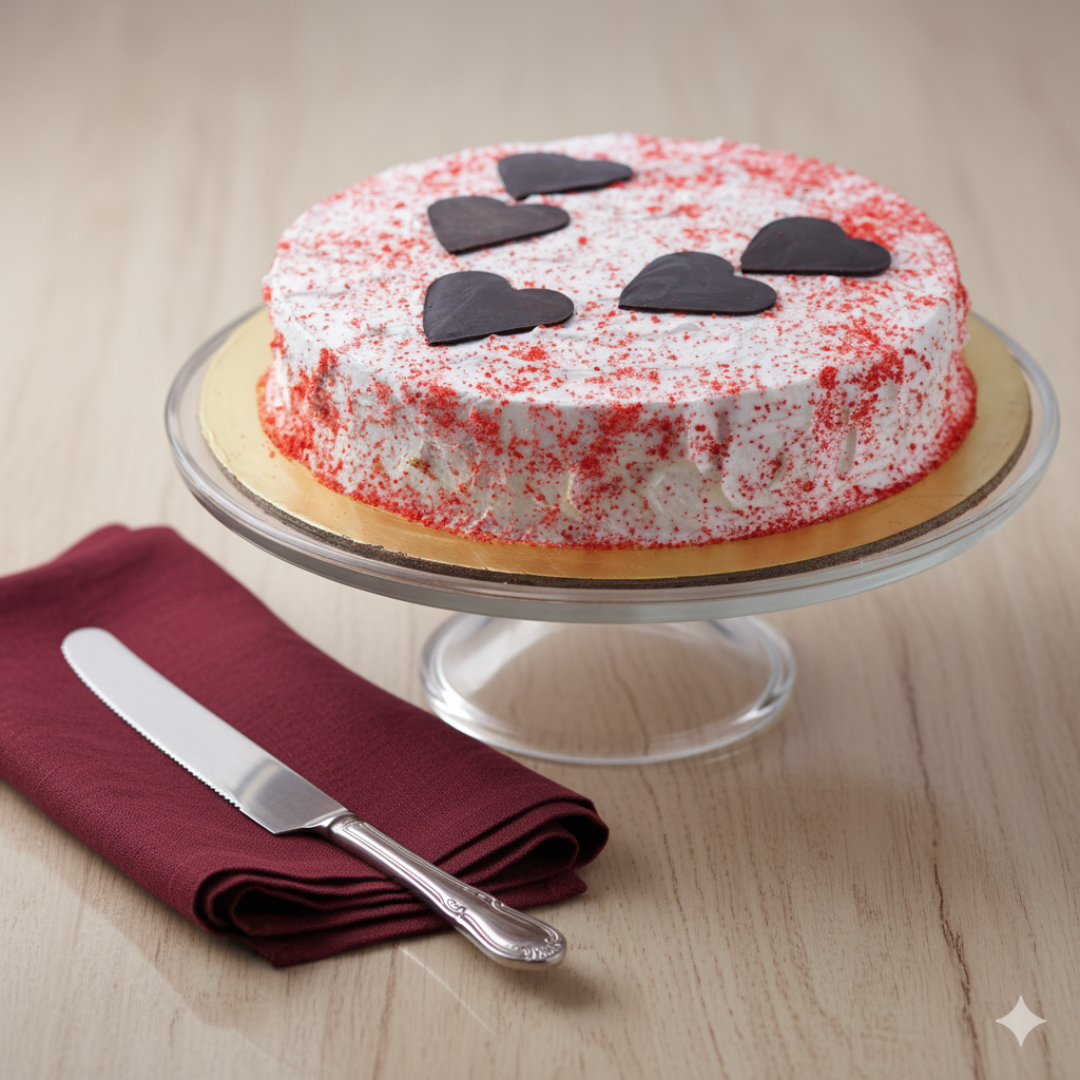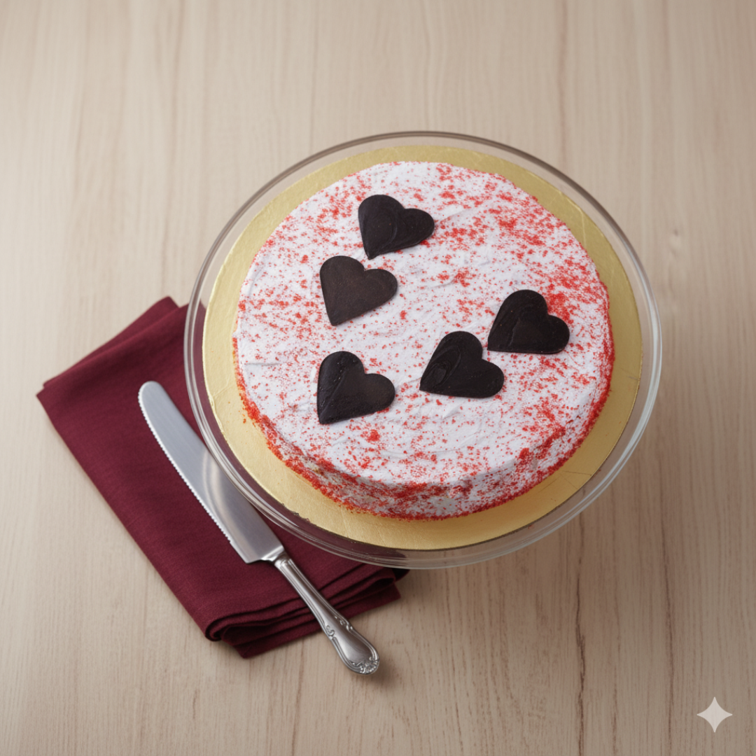Indulge in this delightful vegan red velvet cake, a plant-based masterpiece that’s as beautiful as it is delicious. Moist layers of vibrant red velvet are generously frosted with a creamy, dairy-free topping, lightly speckled with red velvet crumbs, and adorned with elegant dark chocolate hearts. Perfect for any celebration or a sweet treat for yourself.