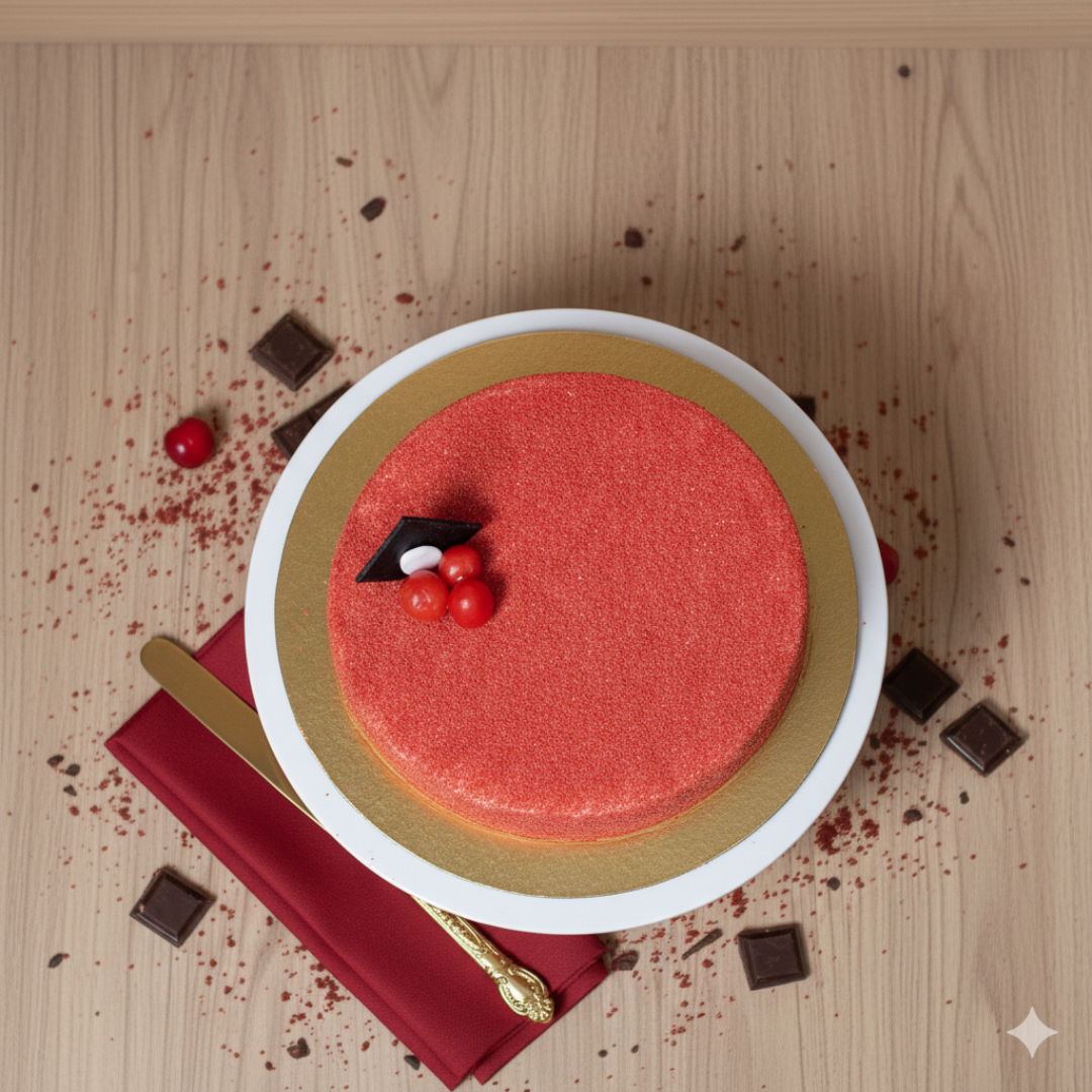 Savor this stunning vegan red velvet cake, a plant-based delight featuring moist, rich red velvet layers generously filled with creamy vegan cream cheese frosting between each delicious tier. It’s elegantly coated in shimmering red sprinkles, creating a dazzling texture. Adorned with a sophisticated dark chocolate accent and a cluster of ruby-red berries, this cake is a perfect blend of exquisite taste and visual appeal.