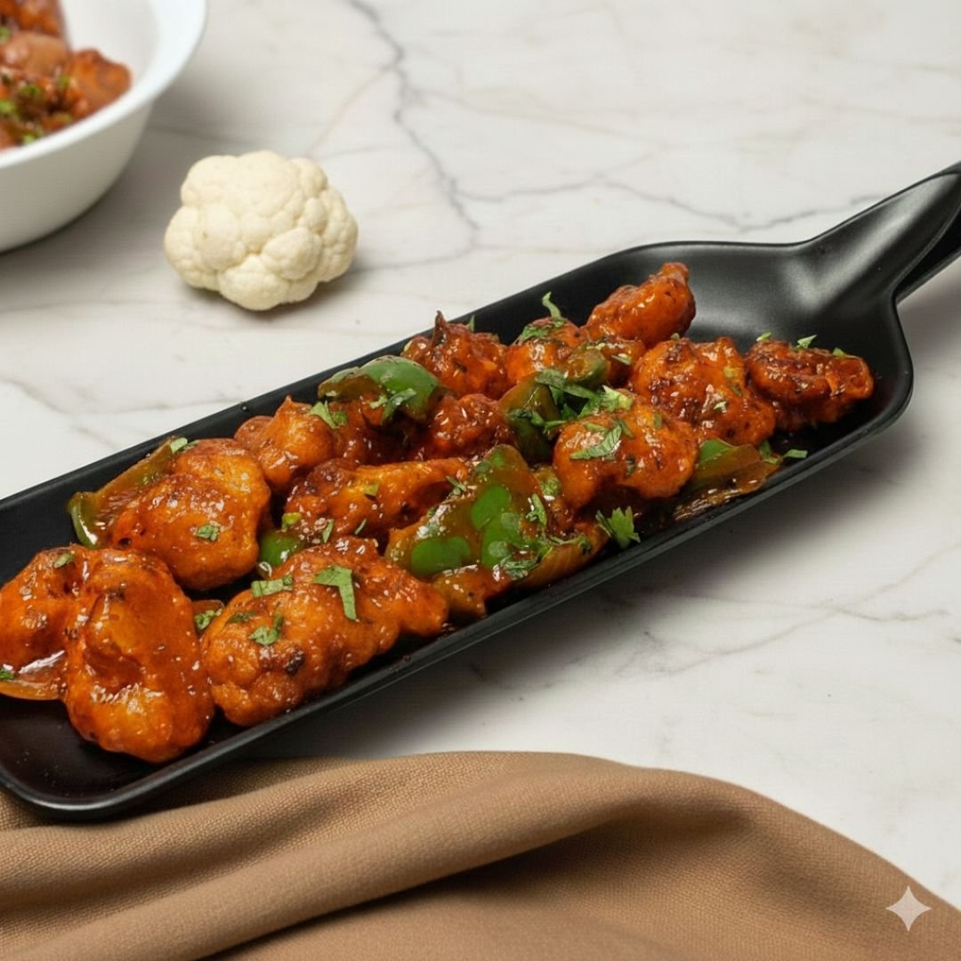 Elevate your palate with this fiery Indo-Chinese favorite. We take premium cauliflower florets, fry them to a golden crisp, and toss them in our exclusive in-house crafted Jain chili sauce. Infused with aromatic Jain herbs and a secret blend of spices, this dish delivers a perfect balance of crunch and heat without a trace of onion or garlic
