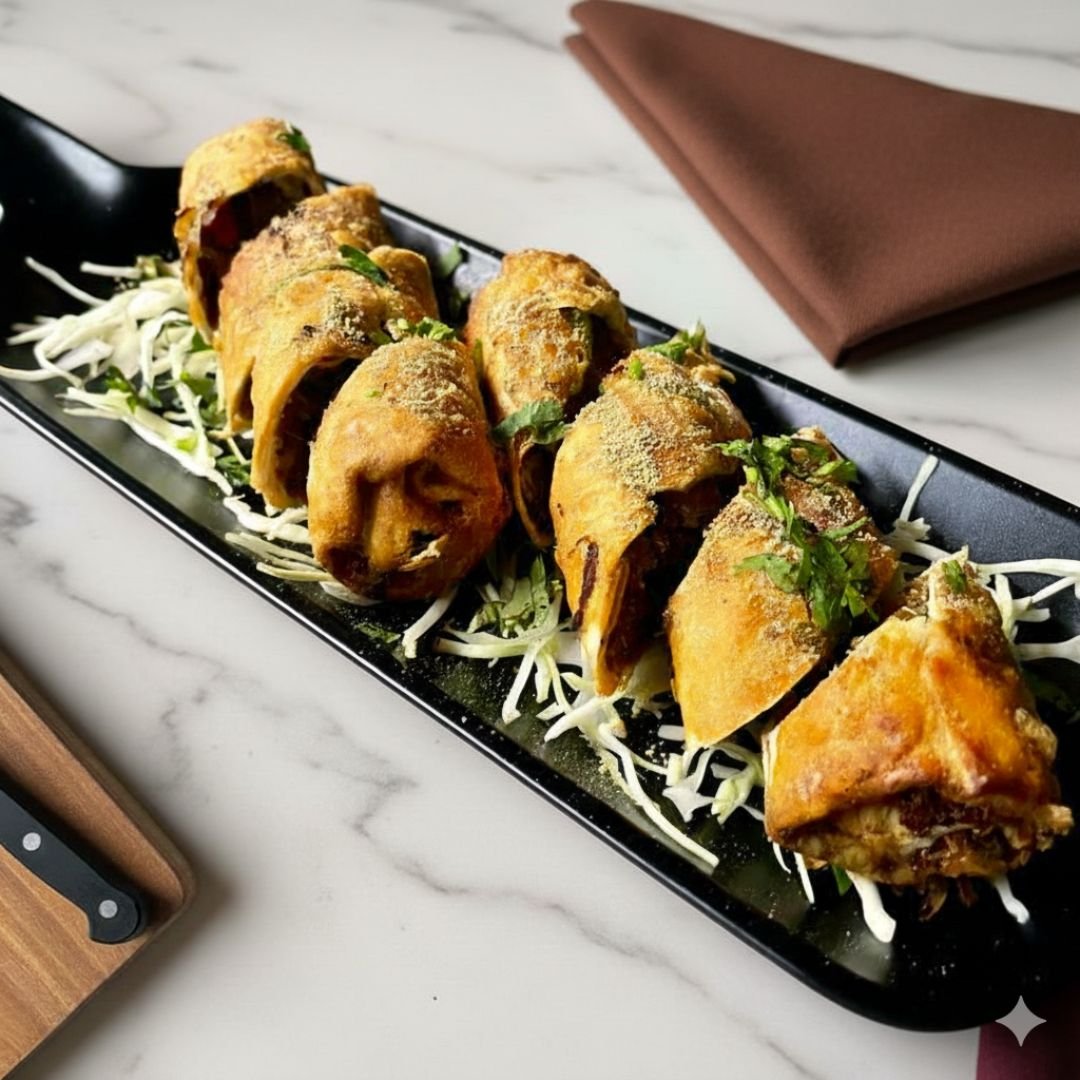 The ultimate crunchy delight! We stuff light, crispy pastry sheets with a generous filling of shredded cabbage and fresh carrots. Seasoned with a punchy blend of authentic Jain herbs—and absolutely no onion or garlic—these golden-brown rolls offer a satisfying texture and distinct flavor in every bite.