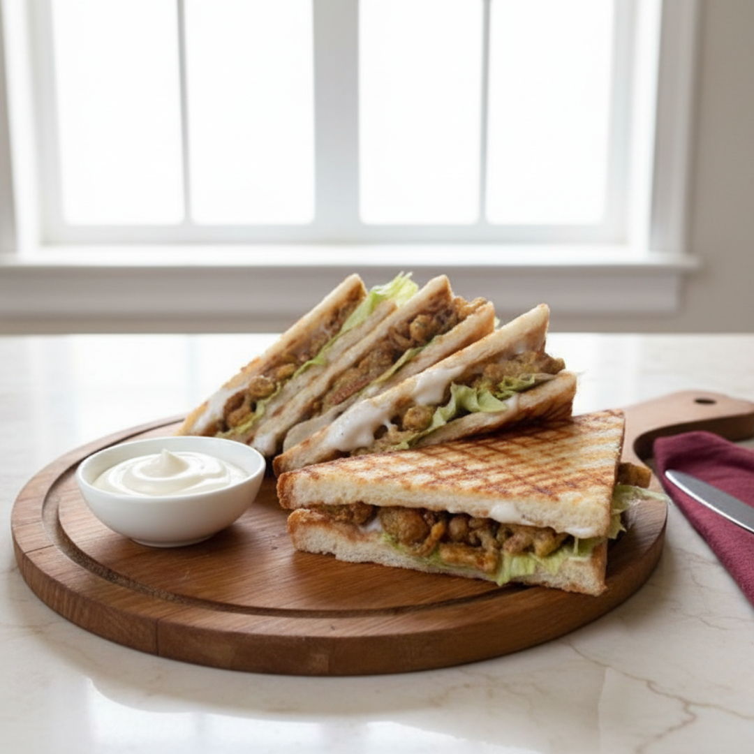 Grilled Sandwich with Tandoori Soya Chaap in Mayo Sauce