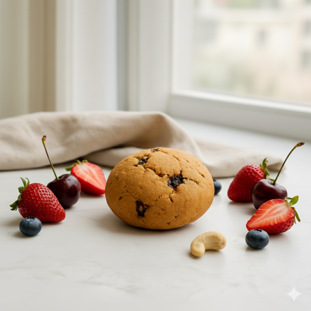 Sweetened naturally with golden Jaggery, these cookies offer a complex, caramel-like depth that perfectly balances the tart, juicy bursts of our triple-berry blend: Blueberries, Strawberries, Cranberry, and Red Cherries. Whether paired with your morning coffee or enjoyed as a wholesome dessert, this is the treat your body and tastebuds have been waiting for.