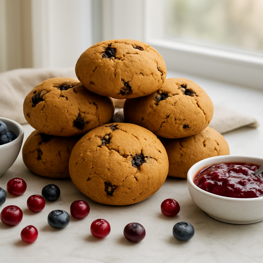 Sweetened naturally with golden Jaggery, these cookies offer a complex, caramel-like depth that perfectly balances the tart, juicy bursts of our triple-berry blend: Blueberries, Strawberries, Cranberry, and Red Cherries. Whether paired with your morning coffee or enjoyed as a wholesome dessert, this is the treat your body and tastebuds have been waiting for.