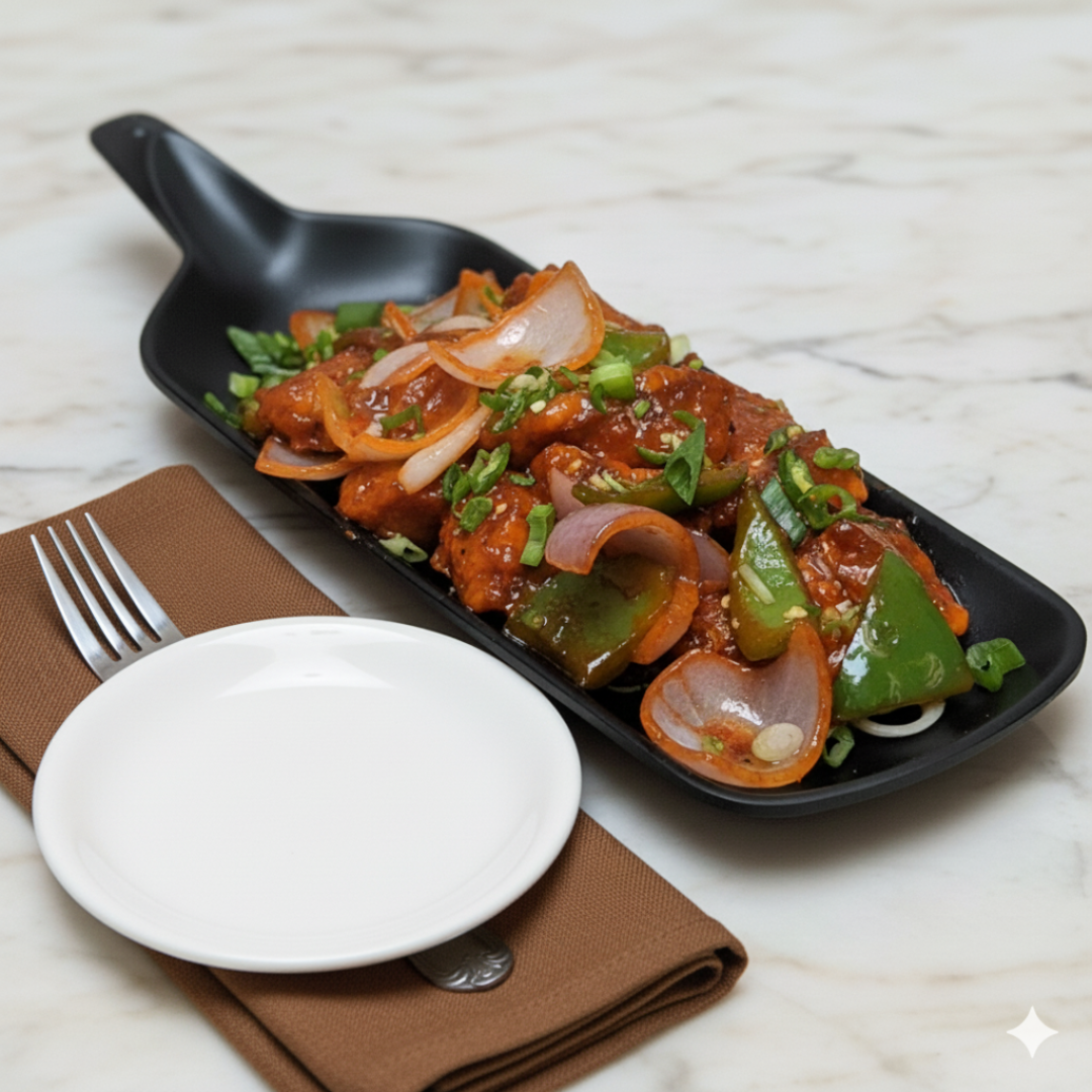 Our Vegan Dry Chilli ChYckin is seasoned with a blend of spices and herbs, including fiery chili flakes, aromatic garlic, and savory soy sauce. Each bite is an explosion of flavor that will leave your taste buds tingling with delight