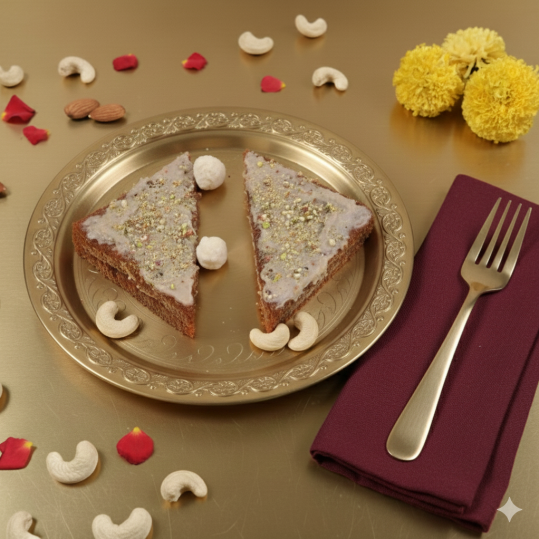 Introducing our Vegan Shahi Toast! We start with our in-house wheat bread, cut into golden triangles and fried to a crisp in light rice bran oil. Each piece is briefly soaked in a syrup made from organic unrefined sugar before being crowned with our signature Vegan Khoya.This creamy, nutrient-packed topping is a luxurious blend of Almonds, Cashews, and Makhana (Foxnuts). Sweet, and incredibly rich—without a drop of dairy.
