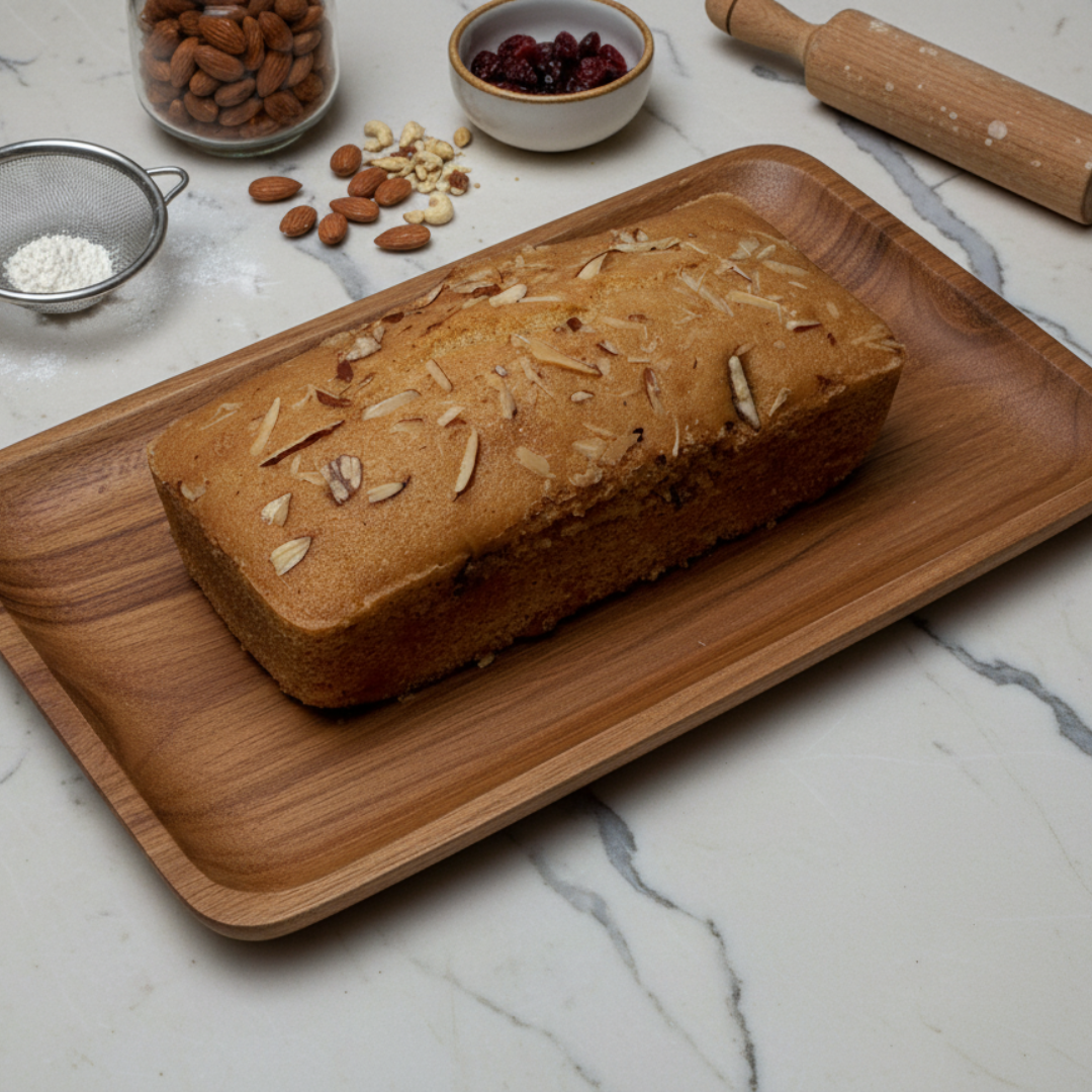 Experience the perfect blend of wholesome goodness and delightful textures with our Wheat Flour Fruit & Nut Tea Cake. Baked with nutritious wheat flour, this moist and tender cake is generously studded with an abundance of luscious dried fruits and crunchy nuts, offering a burst of flavor in every bite. It’s the ideal accompaniment to your morning coffee or afternoon tea, providing a satisfying and naturally sweet indulgence